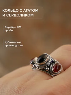 Кольцо серебро 925 с агатом и сердоликом этно Кубачи