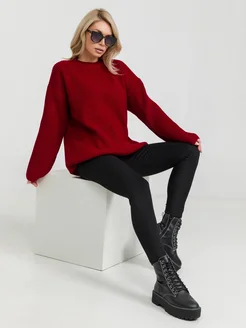 Свитер женский оверсайз вязаный теплый красно-бордовый