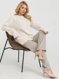 Свитер женский оверсайз вязаный теплый светло-бежевый