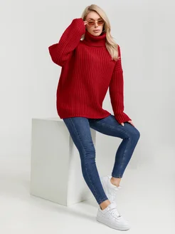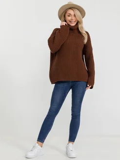 Свитер женский оверсайз вязаный теплый с горлом удлиненный