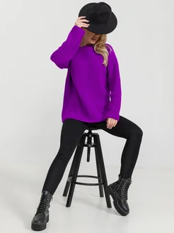 Свитер женский оверсайз вязаный теплый фиолетовый