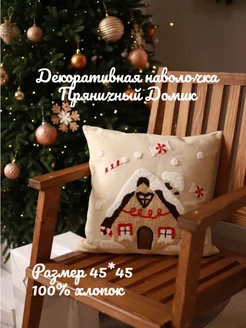Новогодняя наволочка 45х45 с вышивкой Пряничный Домик