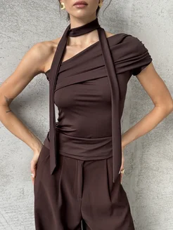 Топ на одно плечо асимметричный под пиджак