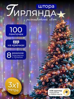 Гирлянда новогодняя на окно 3*1 100 ламп