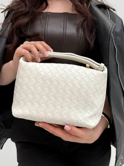 Плетеная белая сумка - хобо, стиль Bottega Venetta