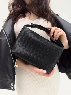 Плетеная черная сумка - хобо, стиль Bottega Venetta