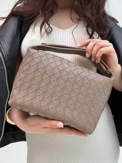 Плетеная бежевая сумка - хобо, стиль Bottega Venetta