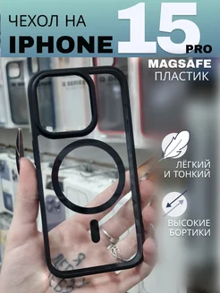 Чехол на iphone 15 PRO прозрачный с рамками Magsafe