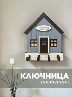 Ключница настенная в прихожую "Деревянный домик" с брелками