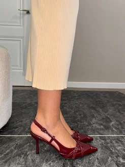 Туфли летние на шпильке открытые слингбэки на каблуке