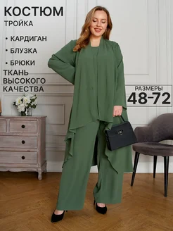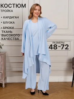 Костюм тройка брючный классический с блузкой и кардиганом