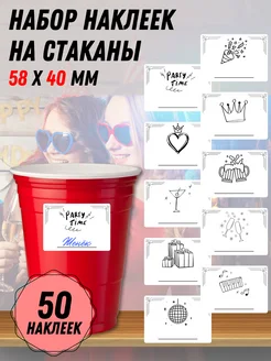 Наклейка для вечеринки Party2 на стакан 50 шт