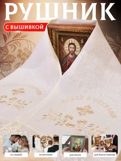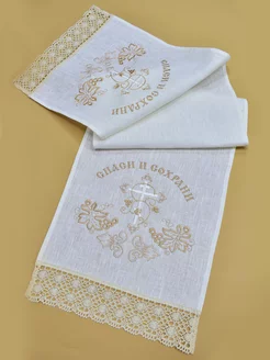 Льняной рушник с вышивкой благословение