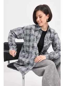 Рубашка осенняя оверсайз удлиненная с принтом в клетку