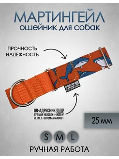 Ошейник для собак мартингейл, 25 мм, "Акулы"