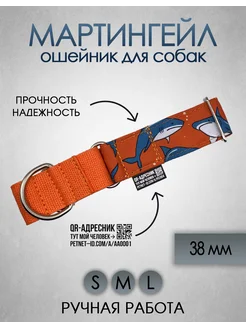 Ошейник для собак мартингейл, 38 мм, "Акулы"