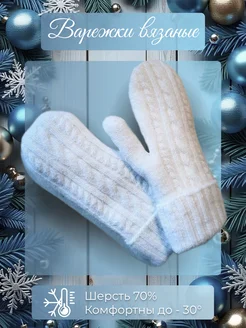 Варежки вязаные теплые белые