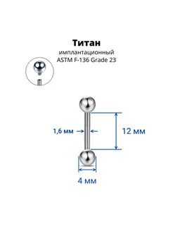 Интернал-штанга 1,6 мм для пирсинга языка и сосков. Титан
