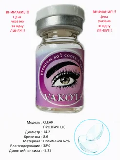 Контактные линзы VAKOLI для глаз (прозрачные), CLEAR -5.25