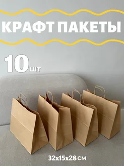 Крафт пакет бумажный белый с ручками, 44*15*40 см