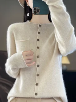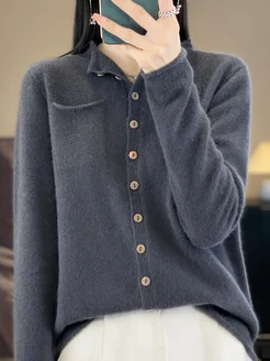 Кардиган кофта на пуговицах бесшовный шерстяной с карманом
