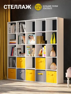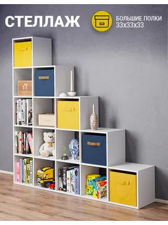 Стеллаж деревянный напольный для книг и игрушек с полками