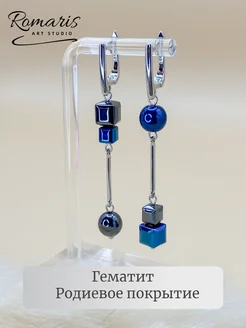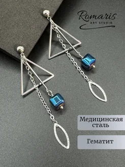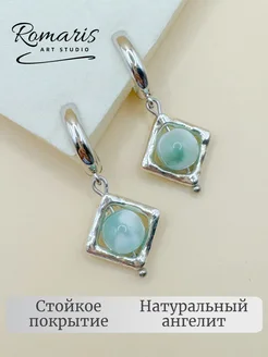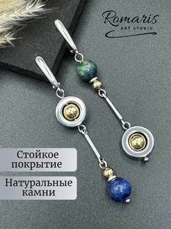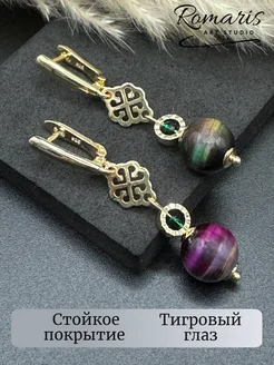 Серьги длинные филигрань с натуральным камнем тигровый глаз