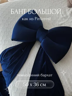 Большой синий бант для подарков и декора из бархата 50х36 см