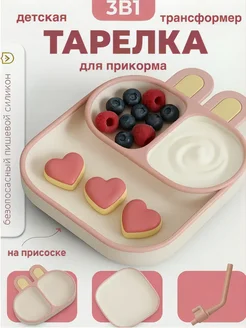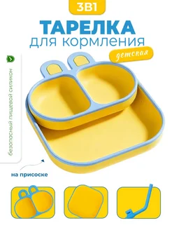 Детские силиконовые тарелки на присосках для кормления 3 в 1