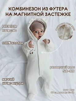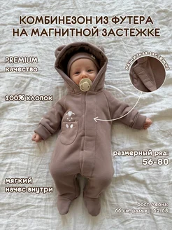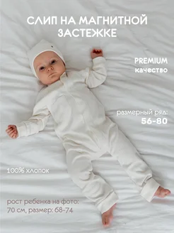 Слип для новорожденных нательный на магнитах с вышивкой ежик