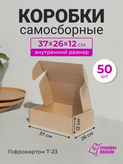 Коробки картонные самосборные 37*26*12 см, 50 шт