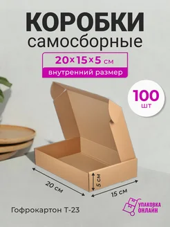 Коробки картонные самосборные 20*15*5 см, 100 шт