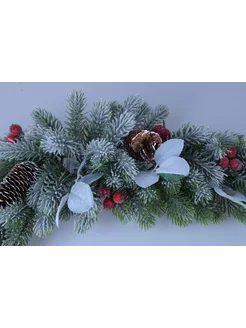 Гирлянда еловая заснеженная шишки ягоды листья 65см