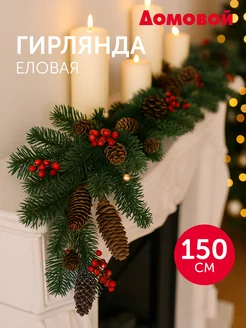 Гирлянда еловая хвойная 150 см с шишками и ягодами