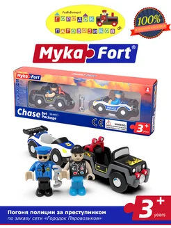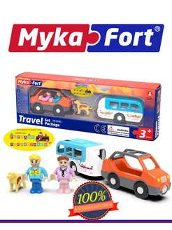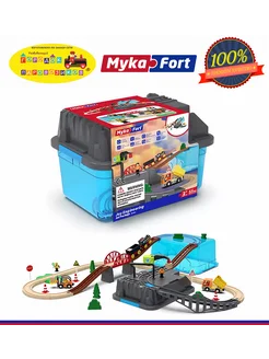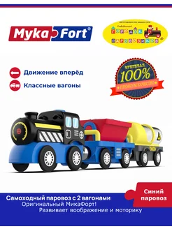 Набор Myka Fort самоходный. Паровоз с 2 вагонами синий