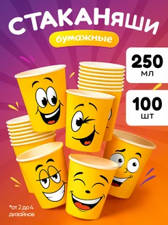 Стаканы одноразовые бумажные Смайлы Улыбки 250 мл 100 шт