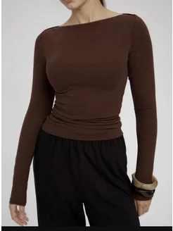 Лонгслив хлопковый с вырезом лодочка базовый джемпер белый