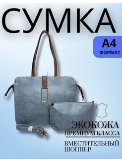 Сумка большая через плечо кожаный шоппер А4 для учебы 2в1