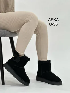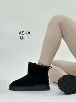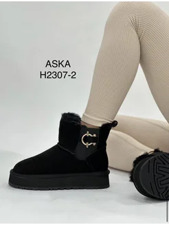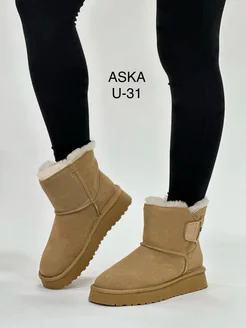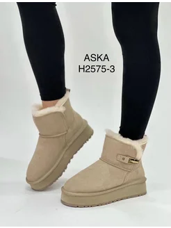 Угги короткие на платформе натуральные из замши и меха UGGS