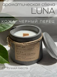 Свеча в гипсе ароматическая Luna Кожа Черный Перец