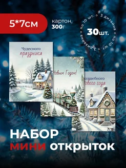 Набор открыток с заснеженными домиками, 30 шт, картон 300г