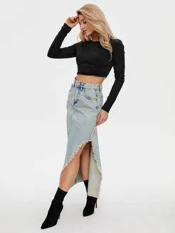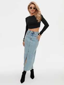 Юбка джинсовая макси с разрезом
