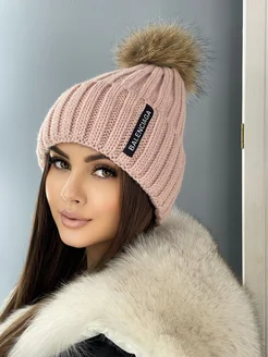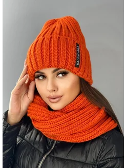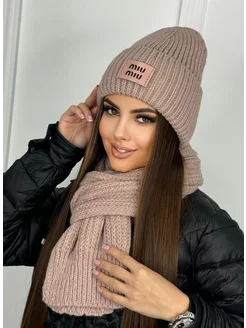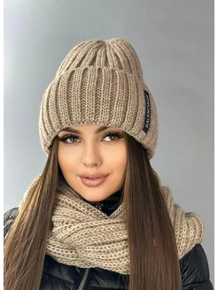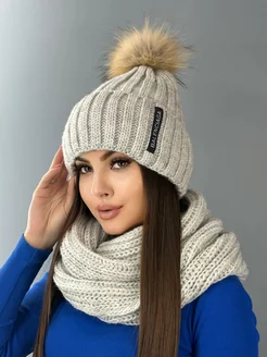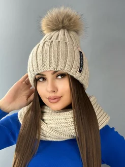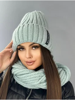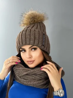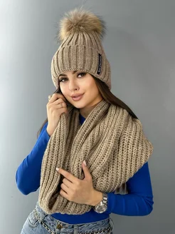 Шапка бини с помпоном и снуд Balenciaga зимний комплект