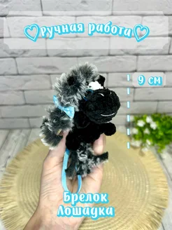 Мягкий вязаный брелок лошадка