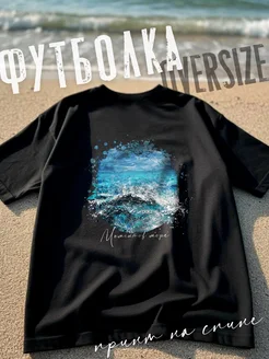 Футболка оверсайз с живописным принтом. Морской пейзаж
