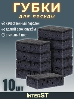 Губки для мытья посуды черные, износостойкие, набор 10 шт
