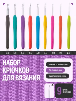 крючки для вязания с силиконовой ручкой набор 9 штук
