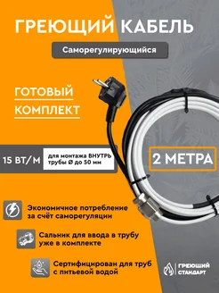 Греющий кабель саморегулирующийся на трубу 2 м