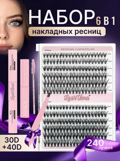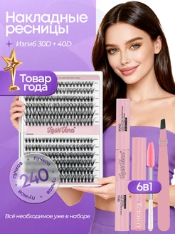 Набор пучковых накладных ресниц с клеем и ремувером изгиб D