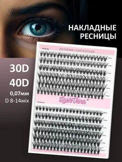 Накладные ресницы пучки с клеем, набор ресниц изгиб D